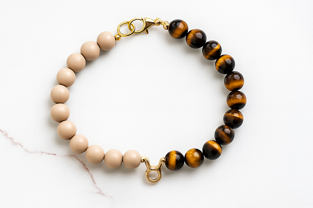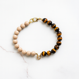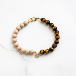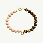Amber Equinox blends warm beige wood-look beads with golden tiger’s eye stones and elegant gold hardware, capturing the golden calm of late autumn. Featuring a sophisticated zodiac centerpiece, this necklace adds a personalized touch of refined style for pets with a serene and graceful spirit.