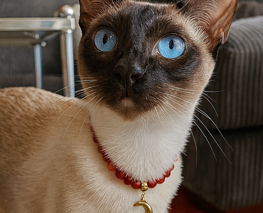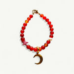 The Harvest Moon pet collar blends rich carnelian red beads with a delicate freshwater pearl and a subtle pink starfish charm, evoking twilight skies and ocean tides. Finished with a gold crescent moon pendant symbolizing intuition and renewal, this handcrafted collar combines elegance and durability. Designed for comfort and style, it elevates your pet’s look for special occasions or daily moments filled with celestial charm.