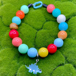 Explore the enchanting world of our Dino Harmony Collar – Combining vivid acrylic beads with soothing turquoise and tiger's eye healing crystals, this one-of-a-kind accessory not only adds a touch of enchanting charm to your pet's attire but also promotes their overall well-being. Shop now to experience the magic and elevate your pet's style and wellness!