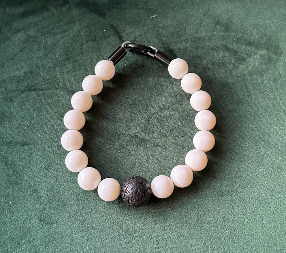 The Frost Ember Collar pairs cool white accents with earthy lava beads, creating a stylish winter look that’s subtle yet striking. Designed for pets who exude quiet strength, this collar adds a playful touch of warmth and calm to any walk or playtime adventure.