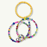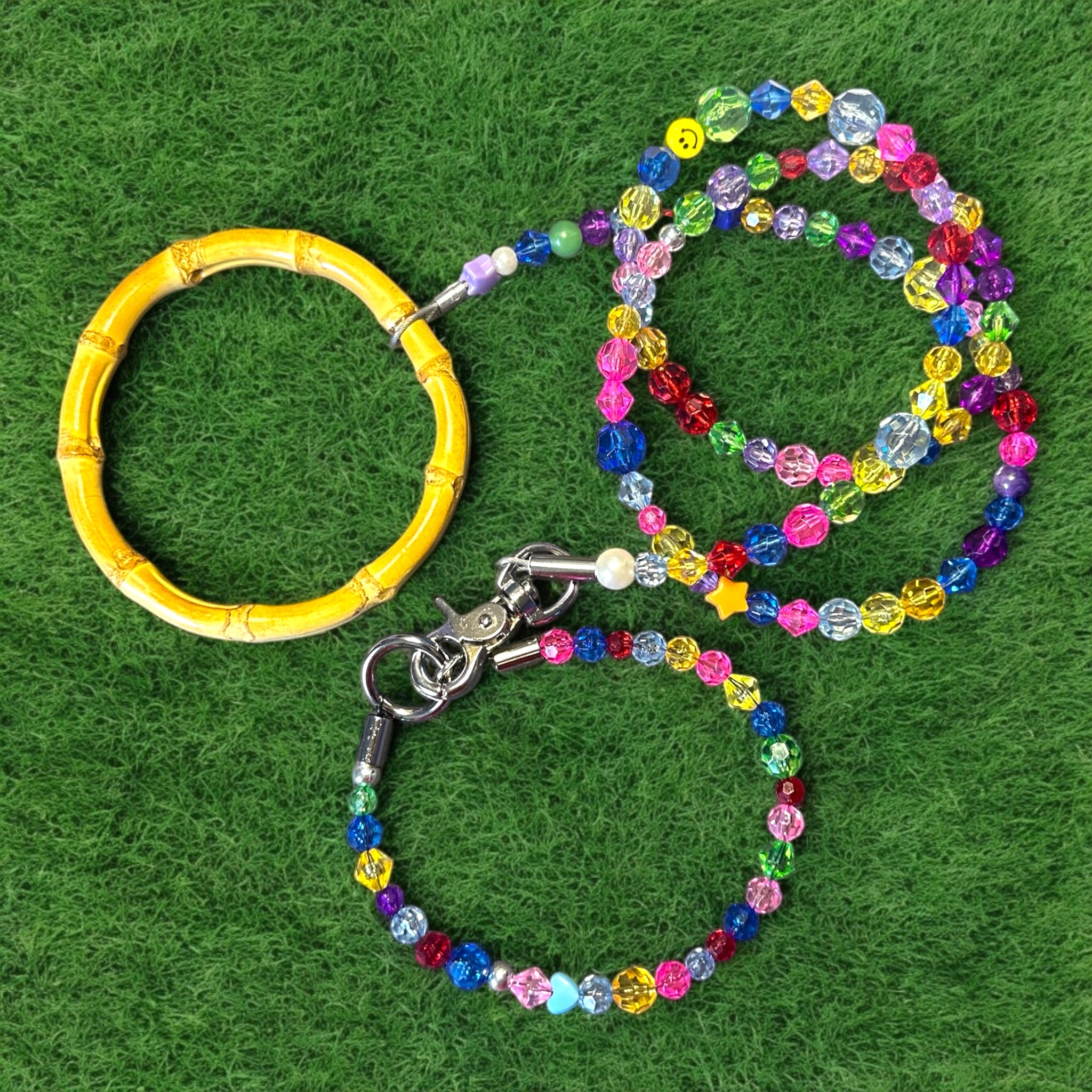Get a grip on style with our Prism Leash! The prismatic colored beads will add a pop of color to your walks, while the bamboo ring provides a natural grip. Walk your dog in style (and comfort) with our unique leash.