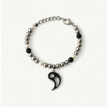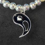 This elegant necklace features glossy black, pearl, and metallic beads, beautifully complemented by a sleek enamel yin-yang pendant with a sparkling crystal accent. The monochrome design reflects harmony and balance, symbolizing peace and protection. Expertly handcrafted for a lightweight yet durable wear, this piece suits everyday use while adding timeless sophistication. A refined accessory for pets with gentle, balanced spirits, it effortlessly enhances any look with understated grace.