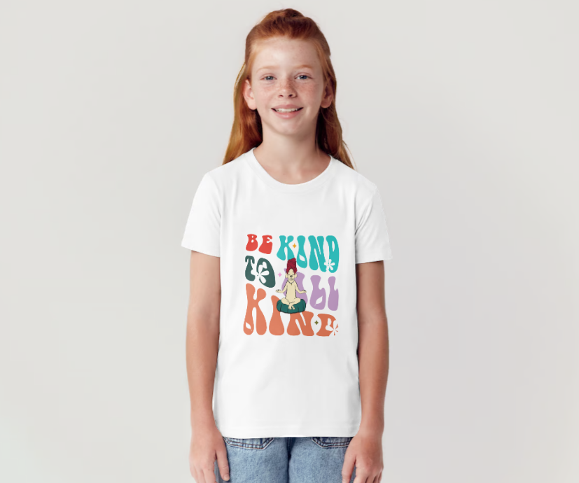 Spread pawsitivity and sustainable style with our "Be Kind to All Kinds" t-shirt! Made from soft, organic cotton, this eco-friendly tee features a vibrant retro-inspired design with colorful typography and the adorable Good Vibes Dog meditating at its center. Perfect for casual outings or lounging in comfort, this hoodie is a cozy reminder to embrace kindness, inclusivity, and good vibes every day. A must-have for kid who loves staying stylish while caring for the planet!