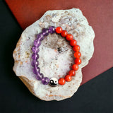 Embrace the duality and mystique of the Pisces zodiac with the Pisces Spirit bracelet. This striking accessory features a harmonious blend of amethyst and carnelian beads, symbolizing intuition, creativity, and grounding energy. The Yin-Yang charm at the center enhances the bracelet's spiritual significance, representing balance and the interconnectedness of opposites. Designed for those who cherish a unique bond with their pets, this bracelet perfectly complements the Leo's Flame Pet Necklace, allowing you to match your pet effortlessly. Shop now to connect with your inner Pisces energy, and celebrate your connection with coordinated elegance that's both meaningful and stylish.