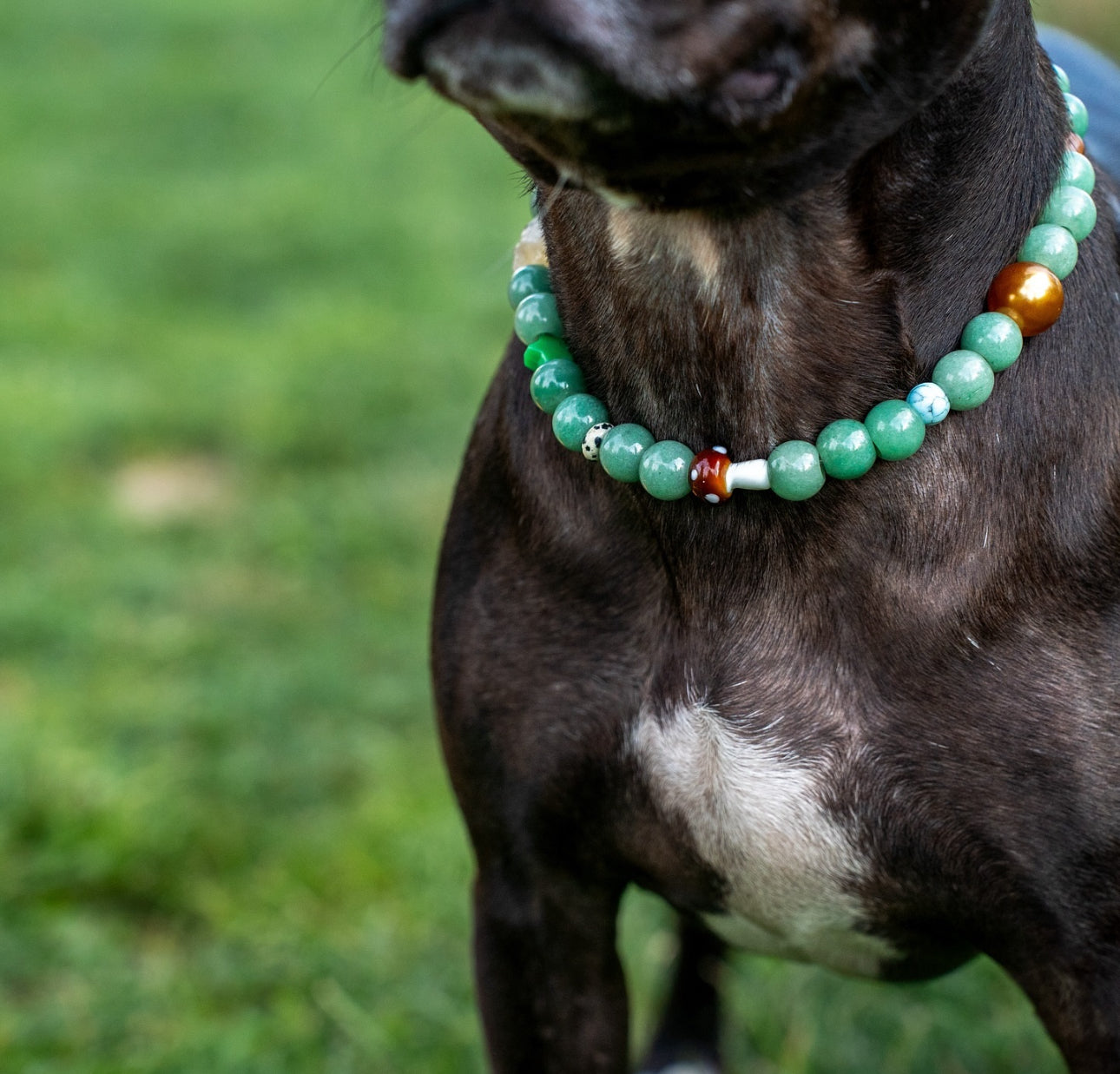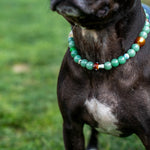 Introducing the Resilient Nature Green Aventurine Collar, crafted with vibrant green aventurine beads and durable nylon backing. Lightweight and comfortable, this collar promotes positivity and good fortune, making it perfect for daily walks and adventures.